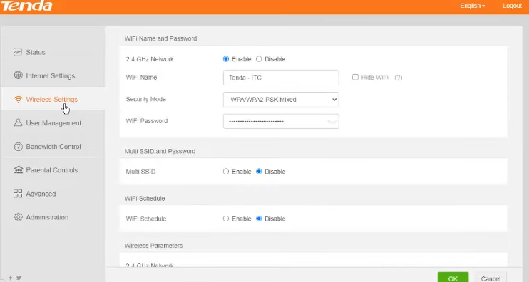It is recommended that you configure the wireless settings above anything else right after your login. This is to protect your WiFi network from people who want to access your network without your permission. If you own a Tenda router, you can follow the steps below: