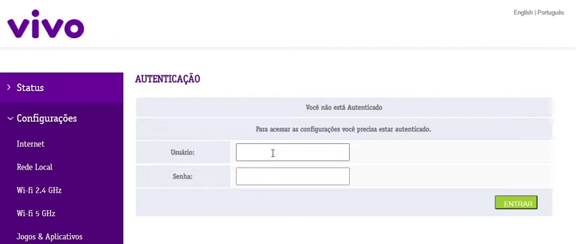 - On the login page, enter your Usario and Senha, then click Entrar.