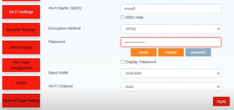 - Enter your new password in the Wi-Fi Password field.