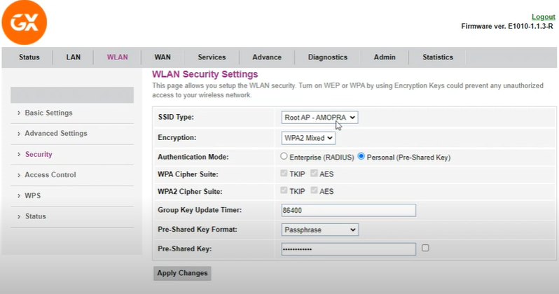 - In the Pre-Shared Key field, enter your new password. Make sure to create a strong password to protect your WiFi network.