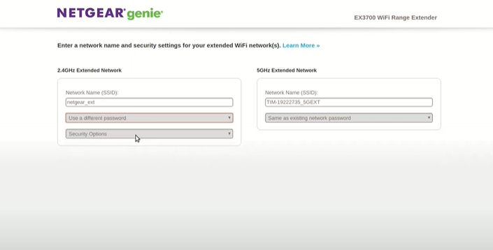 5. Select your existing WiFi network you would like to extend. You can chooce 2.4GHZ or 5GHZ WiFi. You can also select both or deselect whenever you like it.