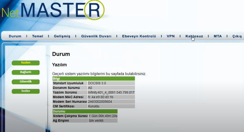 - Enter your new WiFi Network Name in the Ağ Adı (SSID) field.