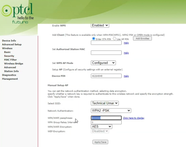 - In the WPA/WAPI Passphrase field, enter your new password.