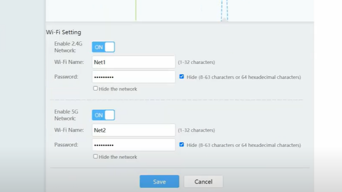 - Enter your new password in the 2.4G Wi-Fi Password and 5G Wi-Fi Password fields.