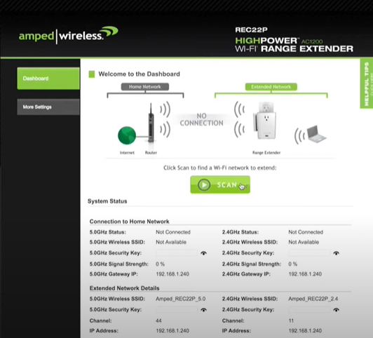 Note: The steps mentioned apply to Amped Wireless REC22P Wi-Fi Range Extender.