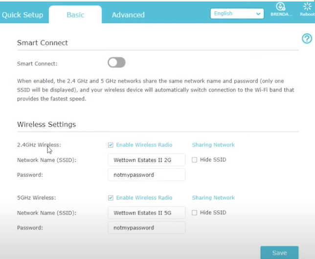 - Step 3: Look for the Wireless tab bar>Basic.