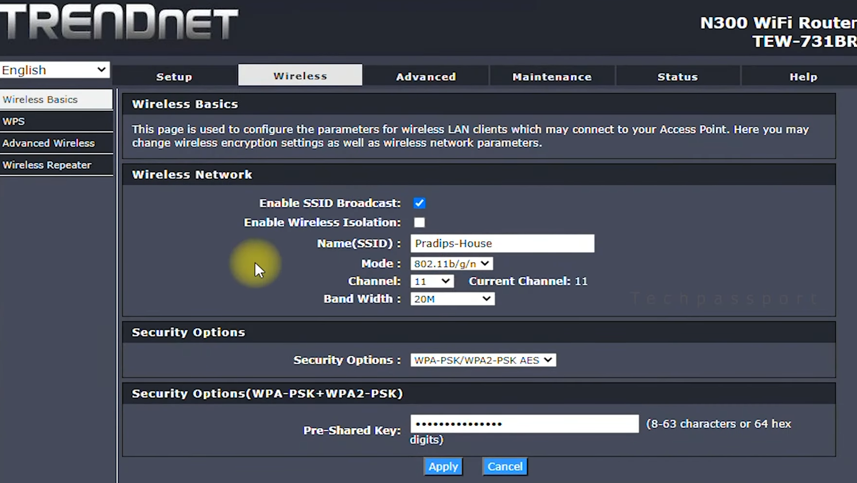 - Enter the new Wi-Fi Password in the Pre-Shared Key field. Make sure it is not easy to guess.
