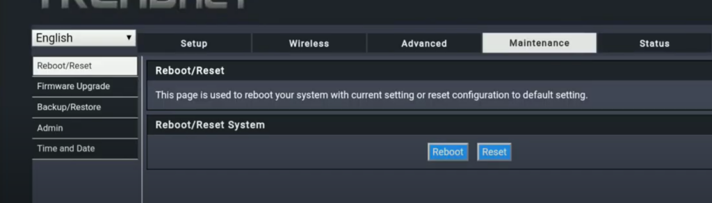 - Go to the Reboot/Reset tab.