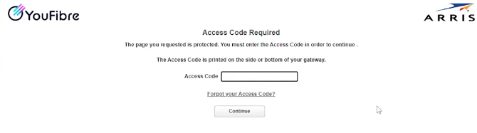 When you are taken to the login page, you must enter the device access code, which is on the product label on the router’s base. When you have entered it, click Continue.